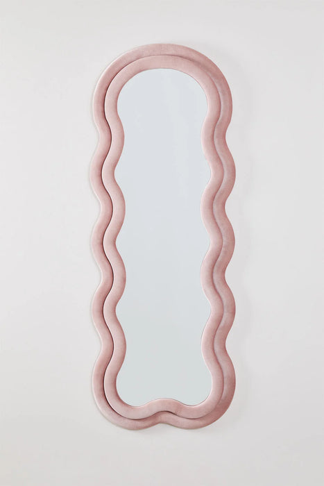 Mirrors are elements that combine functionality and aesthetics, and the Evelyn Upholstered Wall Mirror (60x160 cm) will add a modern accent to your home. The internal structure is made of MDF, which ensures strength and durability. The unique feature of this mirror is the upholstery of 100% polyester fabric with different textures, which is pleasant to the touch. The edges of the mirror are filled with foam, giving volume and softness. Due to its size, this mirror is perfect for a full image, and its wavy design creates the feeling of a larger, brighter and more modern space.