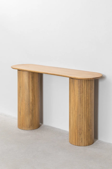 Mango medienos konsolė Analis – natūralus elegancijos akcentas Jūsų namams. Suteikite savo namams rafinuotumo su mango medienos konsole. Šis baldas išsiskiria paprastomis, elegantiškomis linijomis, kurios suteikia gaivumo bet kuriai erdvei. Pagaminta iš 100% natūralaus mango medžio, konsolė garantuoja tvirtumą ir ilgaamžiškumą, todėl bus puikus pasirinkimas tiek prieškambariui, tiek svetainei ar net darbo zonai.