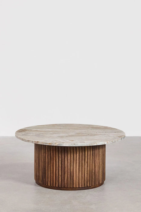 Apvalus kavos staliukas Giselda iš marmuro ir mango medienos